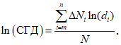 где di - среднее геометрическое значение нижней и верхней границы диаметров частиц i-го диапазона размеров;