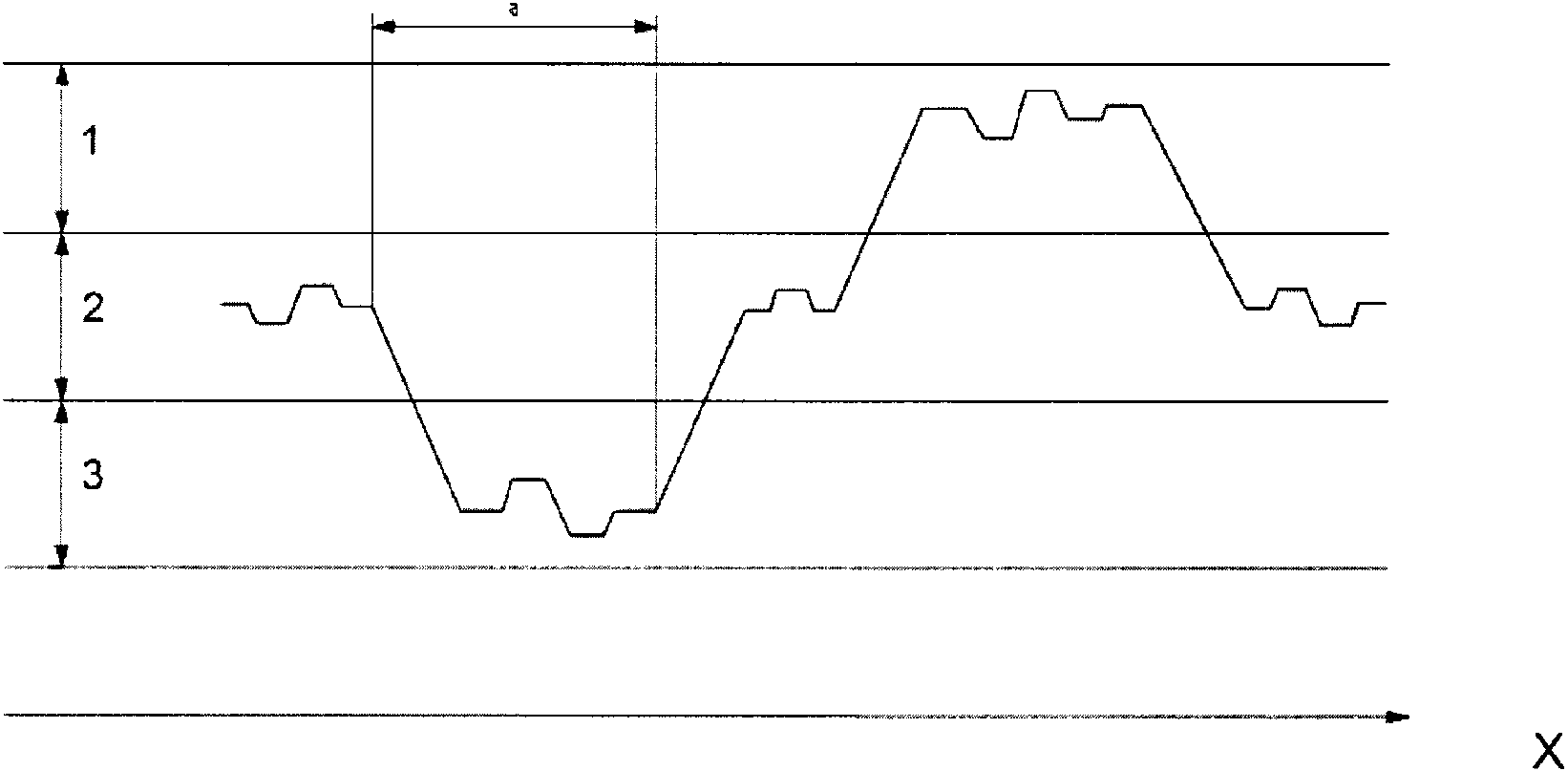 X - время; 1 - цель B (например, зеркало заднего вида); 2 - цель A (например, дорога); 3 - цель C (например, дисплей); a - продолжительность взгляда