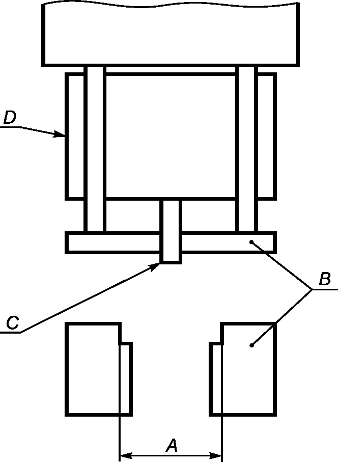 4.1.4 Цилиндрический нагрузочный штифт (C) диаметром (4,9 +/- 0,1) мм и длиной (11,5 +/- 0,1) мм, жестко прикрепленный к цилиндрической массе (D). Суммарная масса нагрузочного штифта и цилиндрической массы должна составлять (530 +/- 10) г.