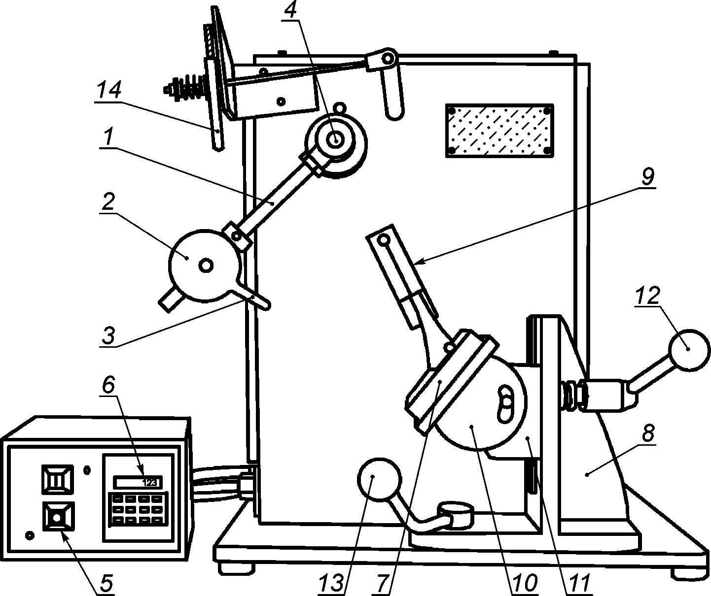3.2 Аппаратура для проведения испытаний по определению усталостной прочности, которая включает приводимый в движение мотором маятник, способный передавать импульсы держателю испытуемого образца с частотой один импульс, несущий энергию 0,68 Дж, в секунду. Аппаратуру закрепляют на жестко фиксированном стенде или на жесткой, свободно стоящей раме, прикрепленной к полу (см. примечание). Пример подходящей аппаратуры показан на