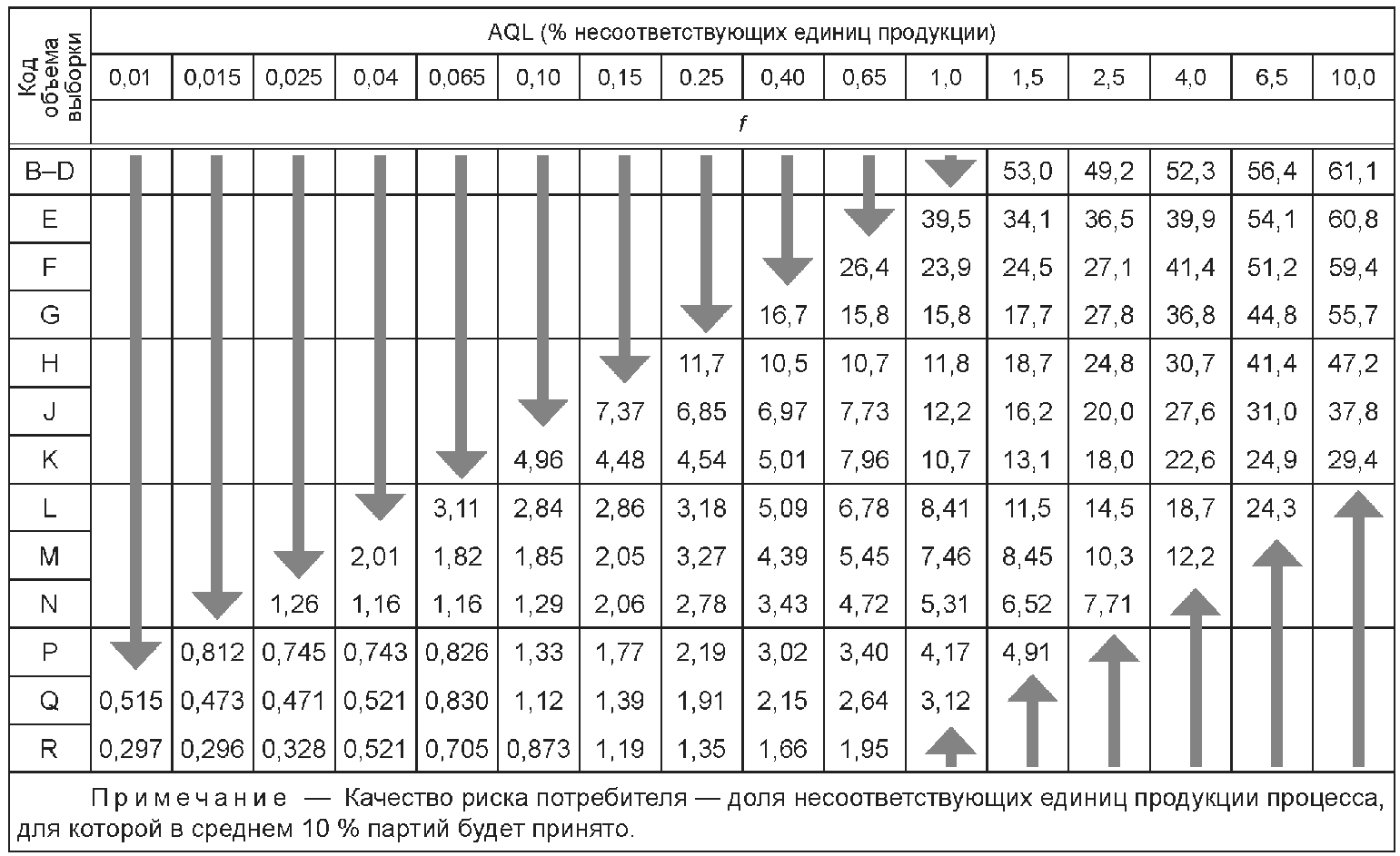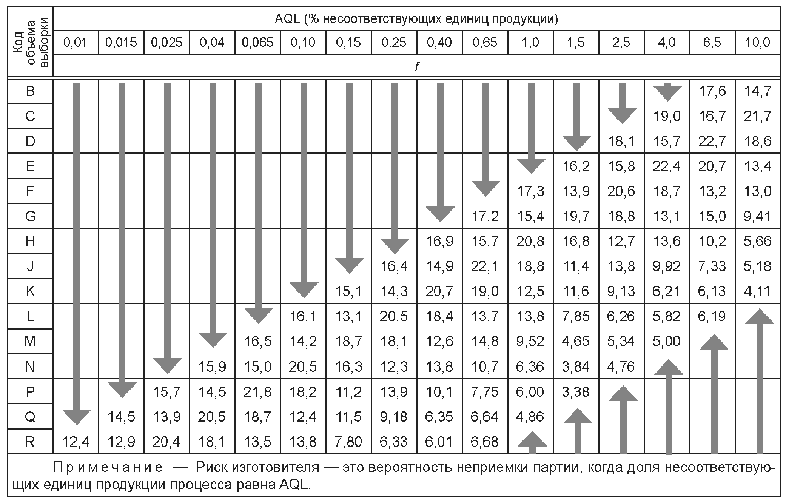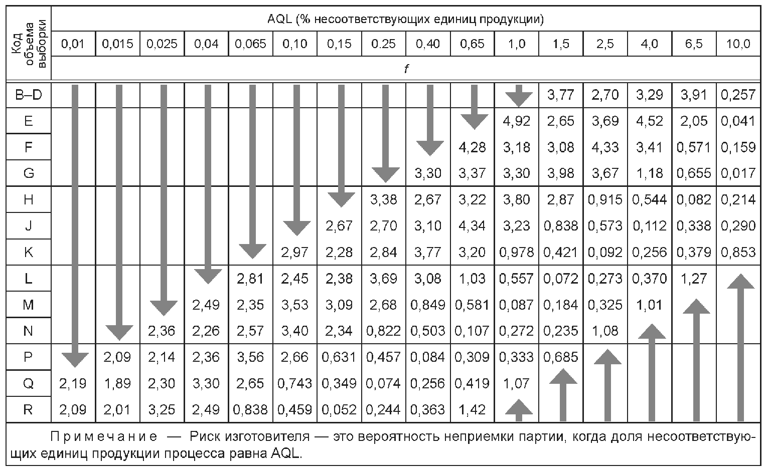 приложении K приведена статистическая теория, на которой основано вычисление уровня качества, соответствующего заданному значению риска потребителя, а также таблицы уровней качества для нормального, усиленного и ослабленного контроля для s-метода и