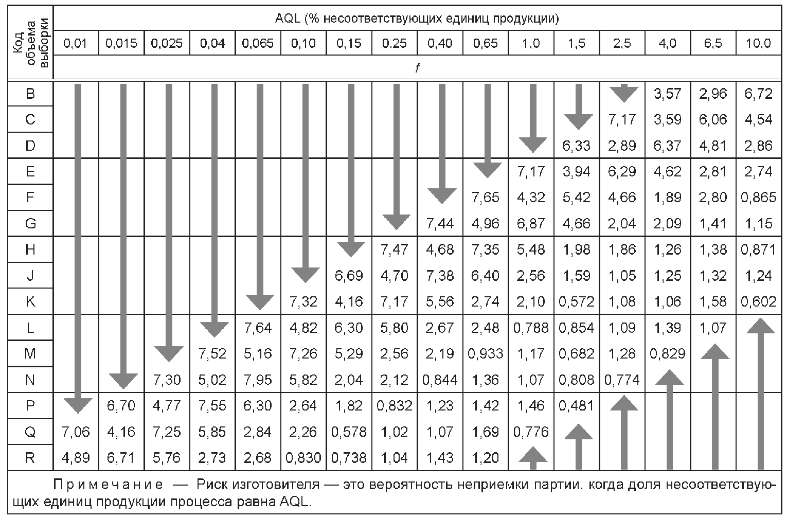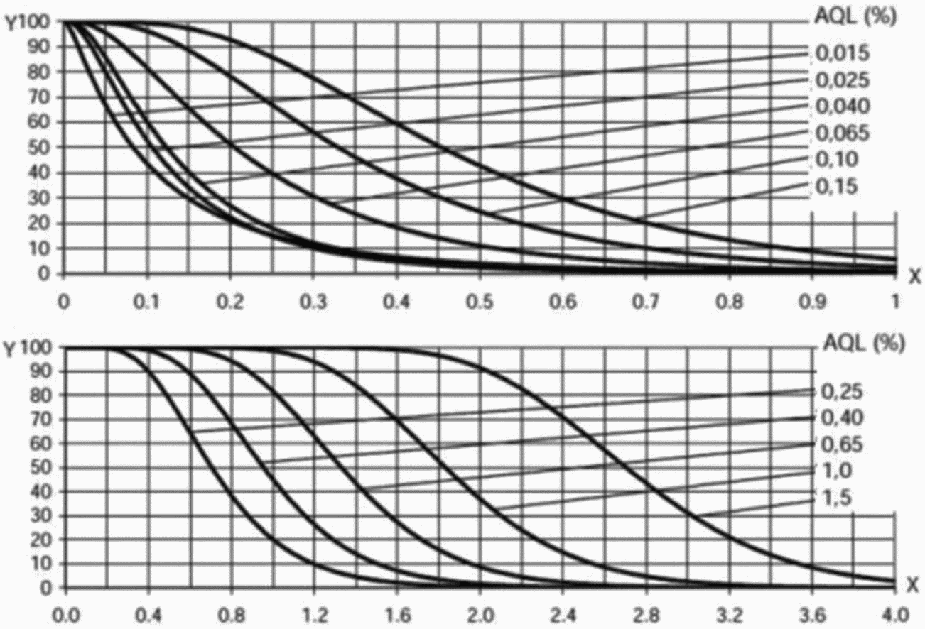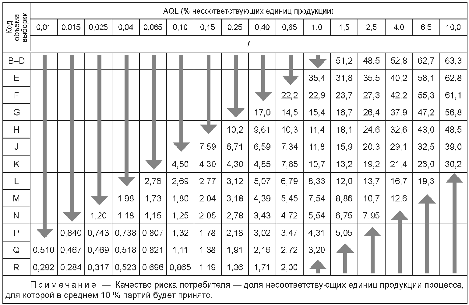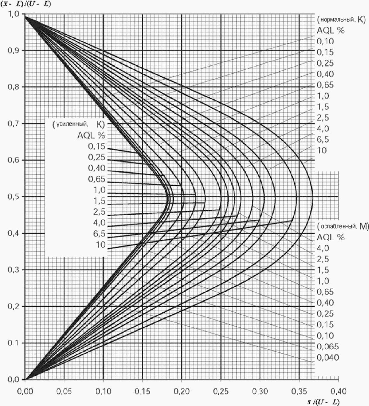 приложении K приведена статистическая теория, на которой основано вычисление уровня качества, соответствующего заданному значению риска потребителя, а также таблицы уровней качества для нормального, усиленного и ослабленного контроля для s-метода и