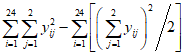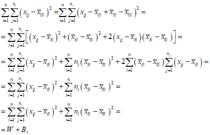 Разность общей суммы квадратов T и суммы квадратов в пределах единиц продукции B имеет вид: