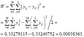 Сумма квадратов в пределах единиц продукции W имеет вид: