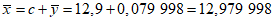 Точность последующих вычислений может быть улучшена вычитанием произвольной постоянной, которая сокращает количество значащих цифр. Обозначим константу c и установим c = 12,9. Полученные значения yij = xij - 12,9 приведены ниже.