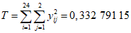 Общая сумма квадратов T отклонений от общего выборочного среднего: