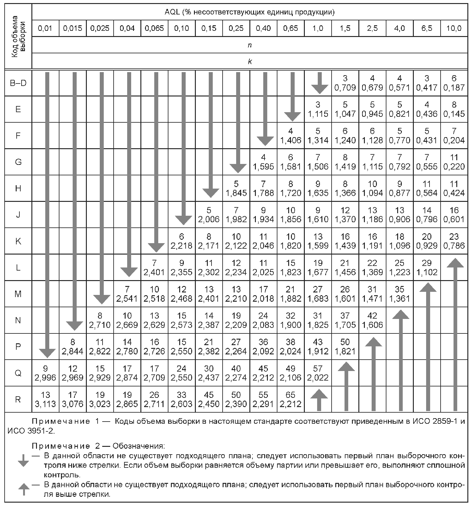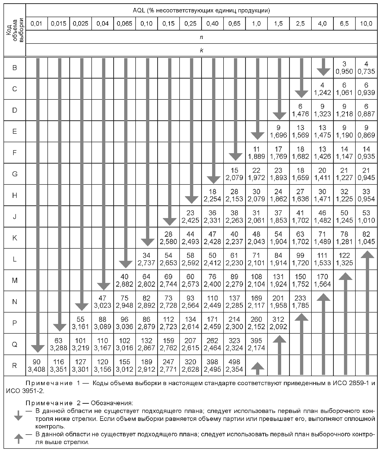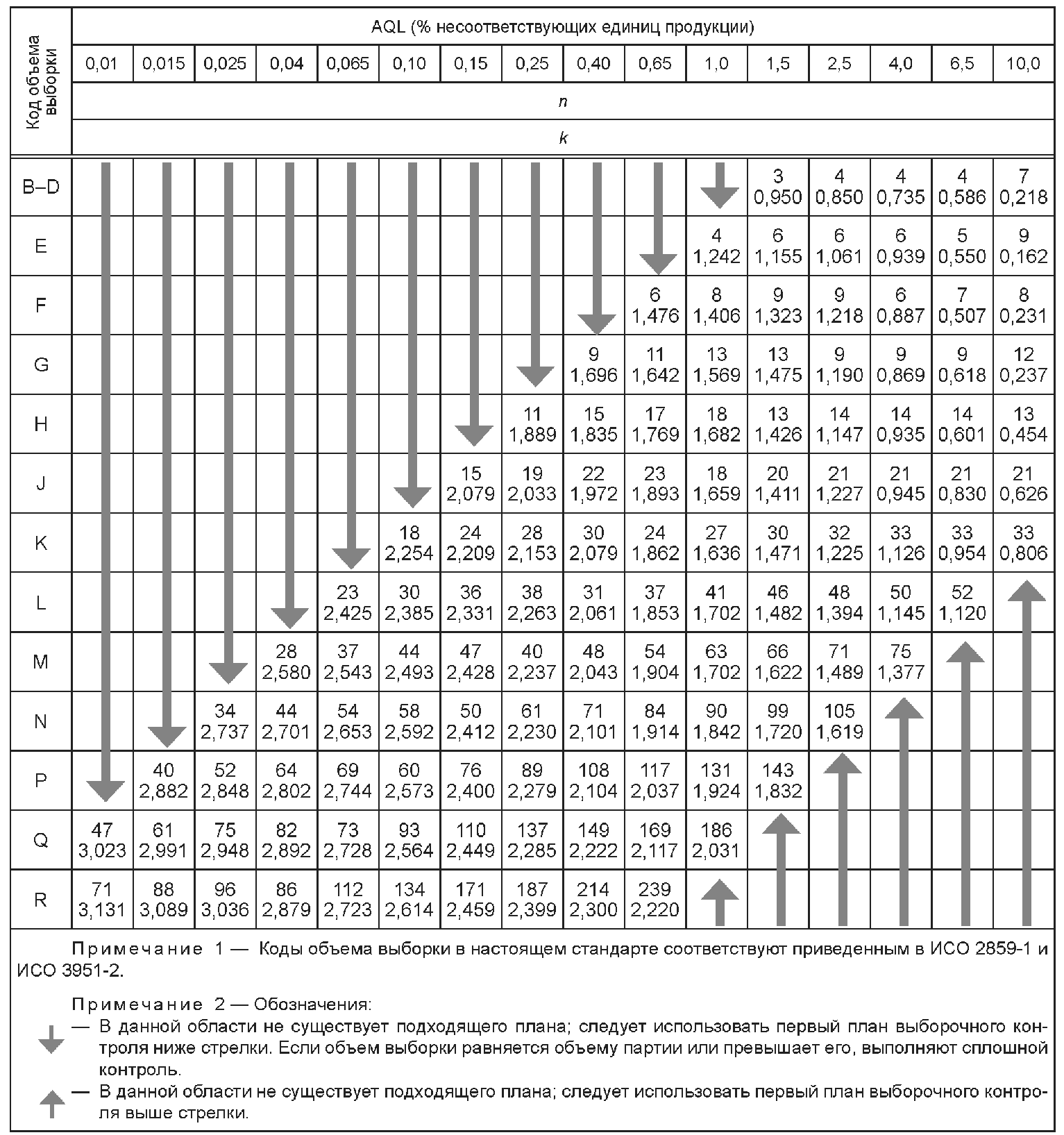 "ГОСТ Р ИСО 3951-1-2015. Национальный стандарт Российской Федерации. Статистические методы. Процедуры выборочного контроля по количественному признаку. Часть 1. Требования к одноступенчатым планам на основе AQL при контроле последовательных партий по единственной характеристике и единственному AQL"