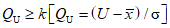 d) если контракт или стандарт (технические условия) устанавливают верхнюю границу поля допуска U, нижнюю границу поля допуска L или обе эти границы, при этом единицу продукции квалифицируют как соответствующую тогда и только тогда, когда ее характеристика качества x удовлетворяет одному из следующих неравенств: