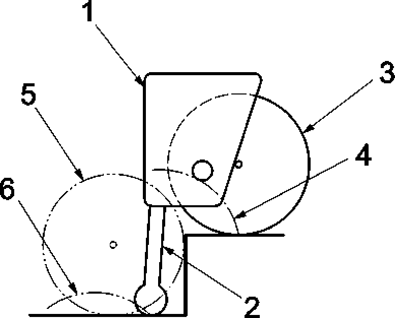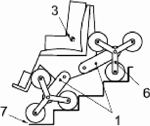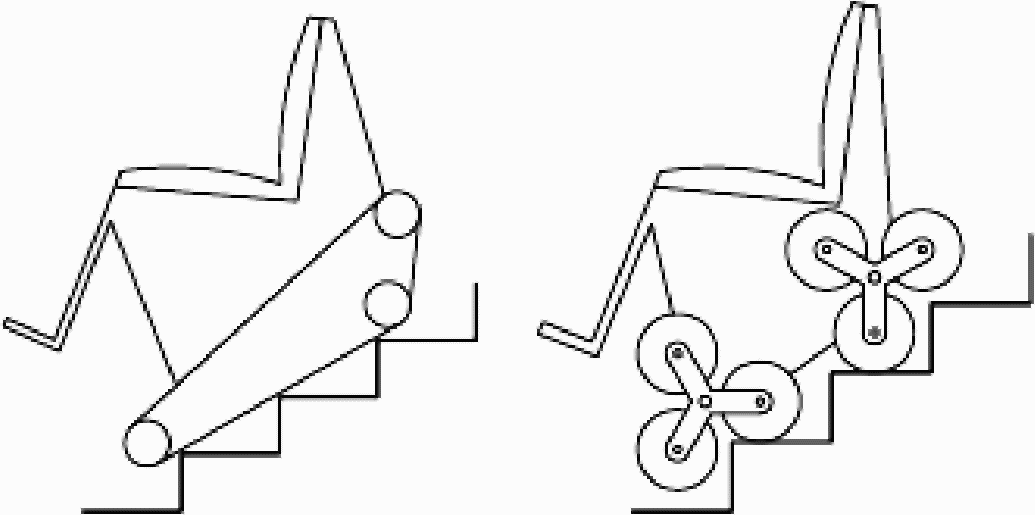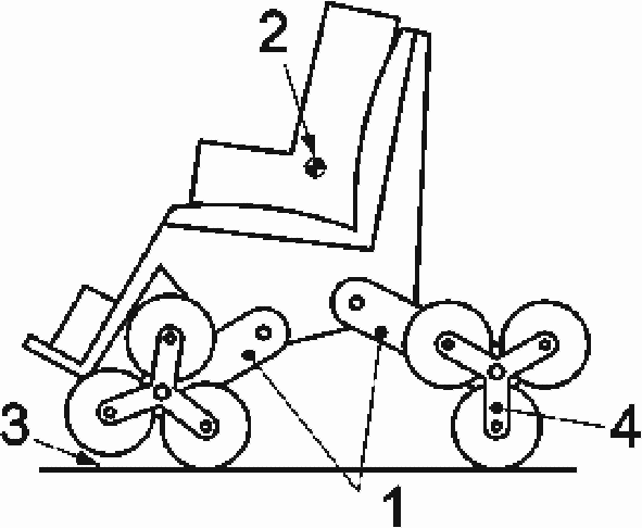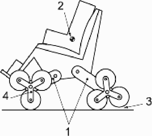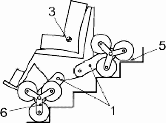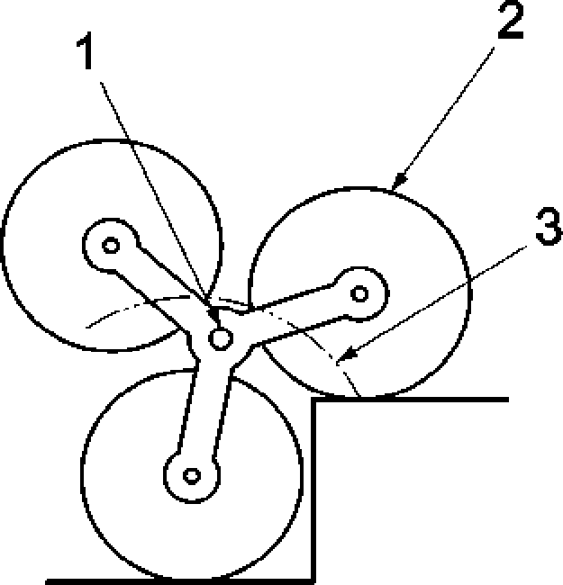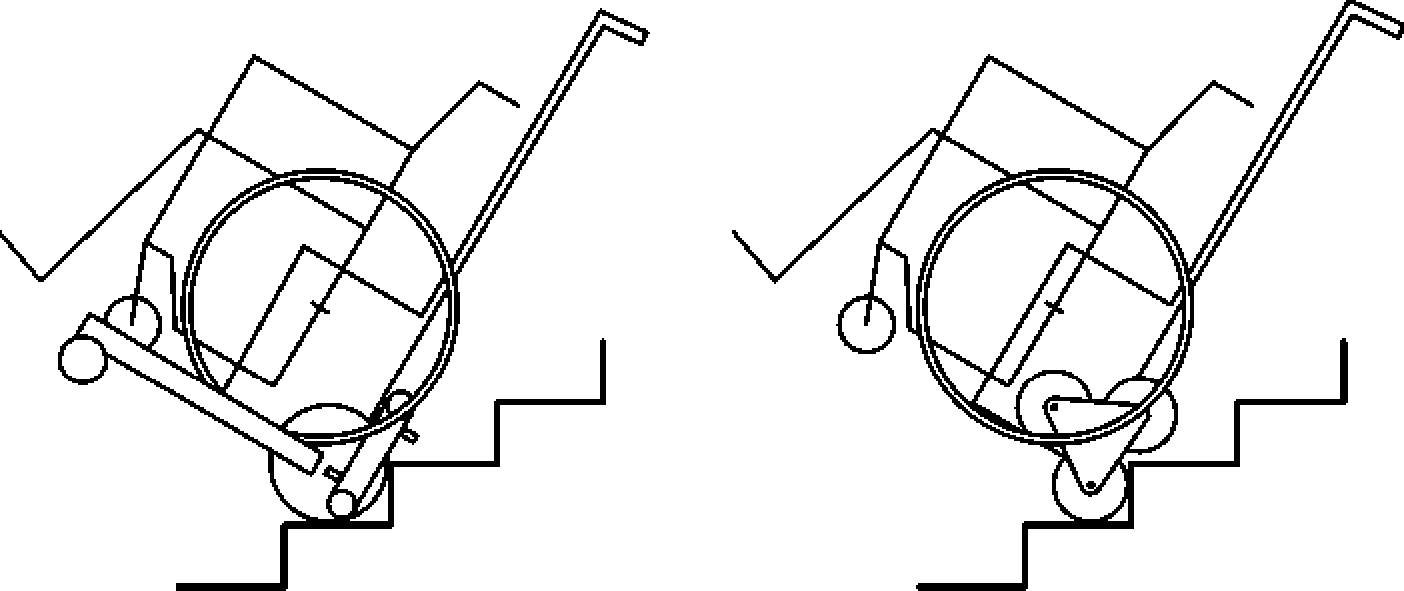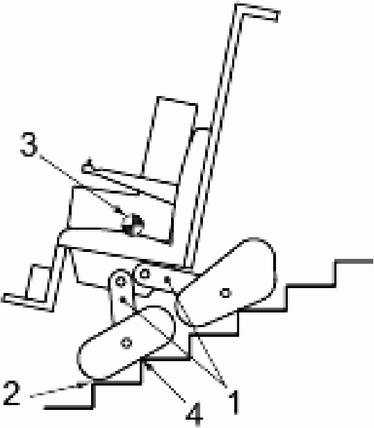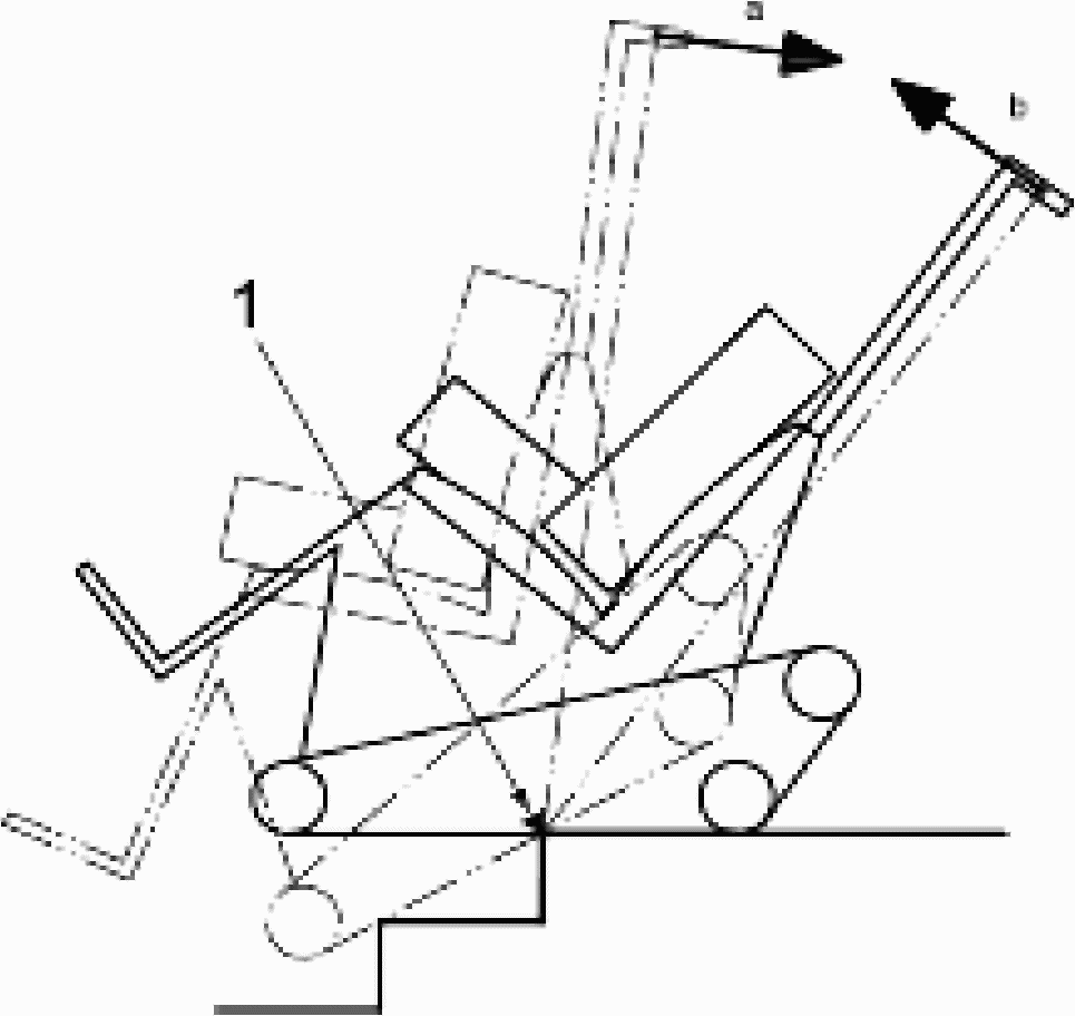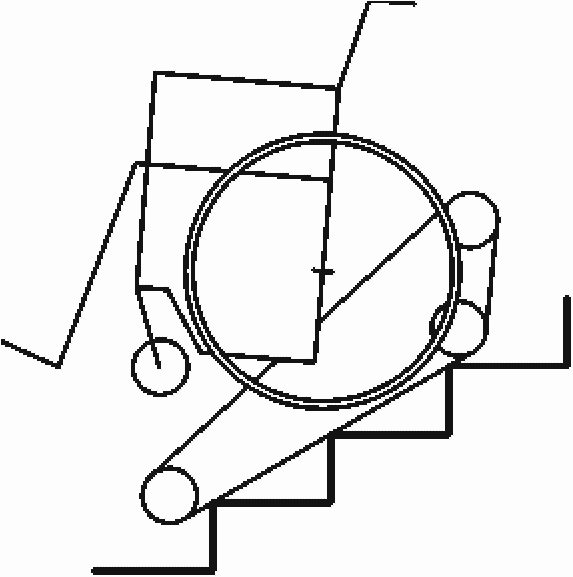 Для устройств для преодоления лестниц наименее устойчивое положение при движении вниз по лестнице зависит от размера кластера (см. для примера рисунки в