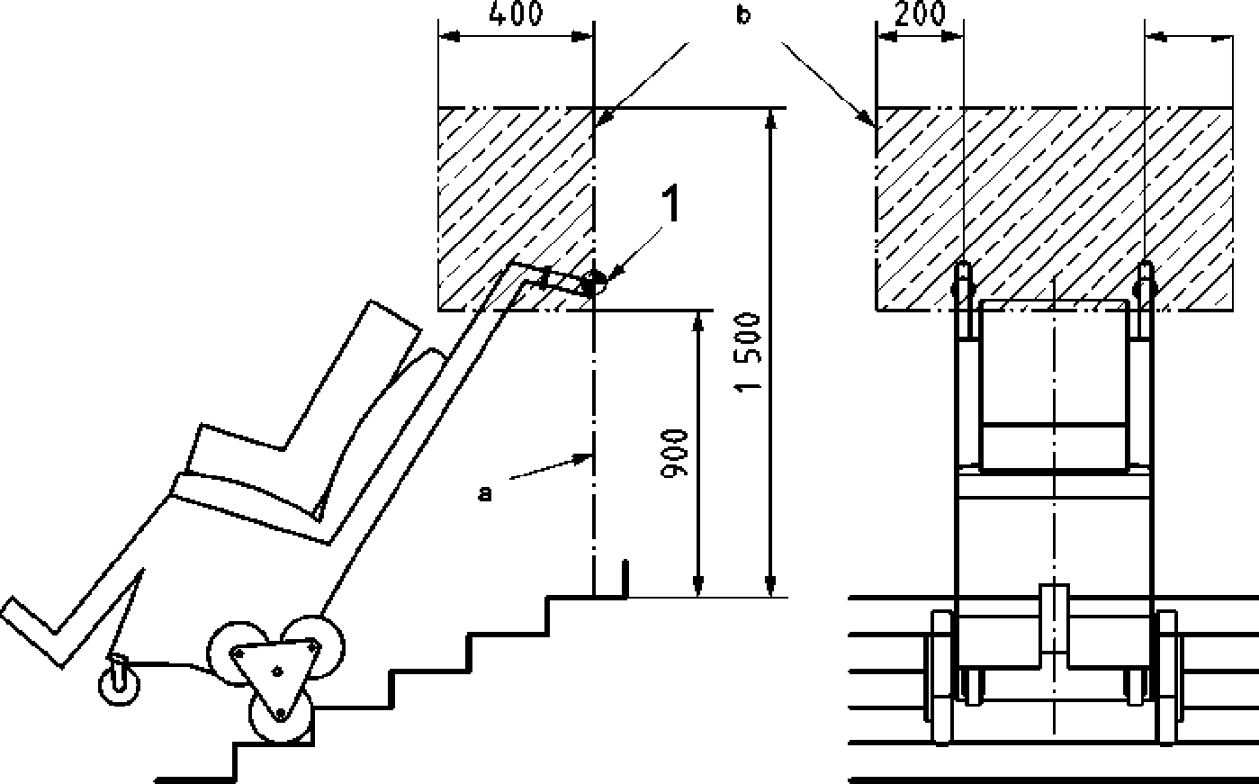 Примечание 1 - Некоторые разделы настоящего стандарта могут быть использованы для испытания устройств для преодоления лестниц с ручным приводом.