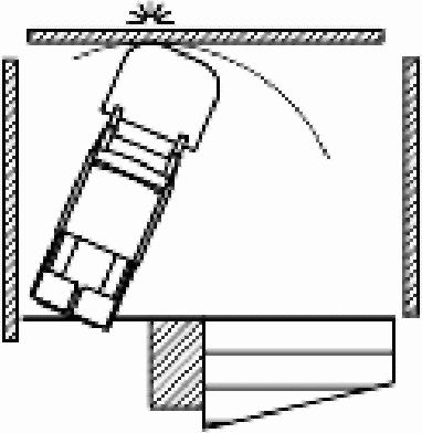 перечислениям c) - e), как необходимо, при преодолении лестницы устройством для преодоления лестниц, ступенчато смещают барьеры для уменьшения эффективного внешнего радиуса лестницы и определяют минимальный внешний радиус винтовой лестницы, которая может быть преодолена при подъеме вверх без контактирования устройства для преодоления лестниц, испытуемого кресла-коляски (если используют), испытательного манекена или любого ограничителя пространства с барьерами.