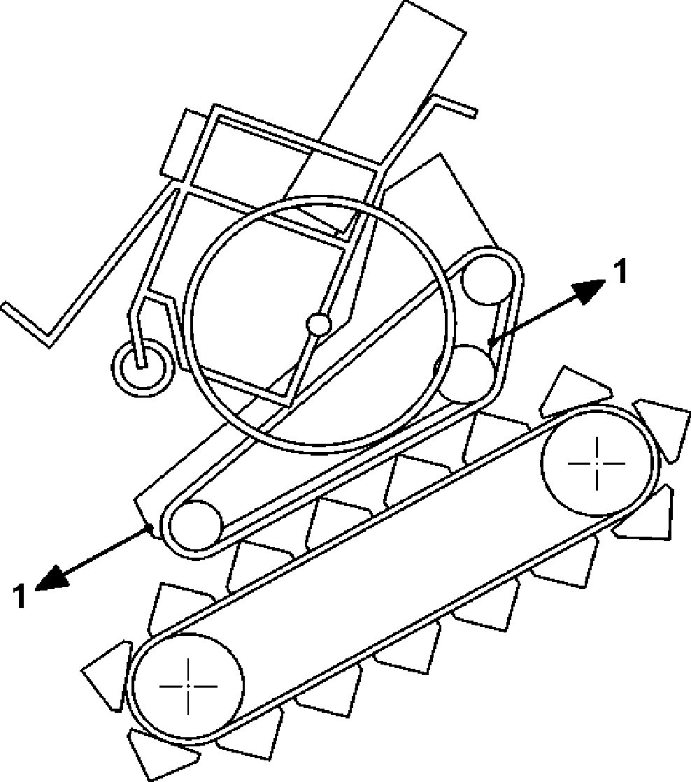 перечислениям h) - j), как необходимо, при преодолении лестницы устройством для преодоления лестниц, ступенчато смещают барьеры для увеличения эффективного внутреннего радиуса лестницы и определяют минимальный внутренний радиус винтовой лестницы, которая может быть преодолена при спуске вниз без контактирования устройства для преодоления лестниц, испытуемого кресла-коляски (если используют), испытательного манекена или любого ограничителя пространства с барьерами.