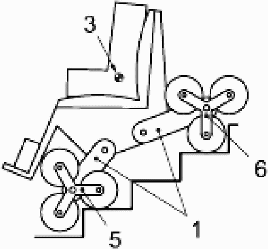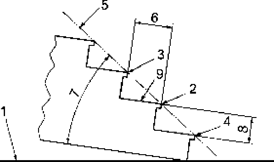 , между вертикалью и линией, соединяющей точку контакта этого кулачка с точкой контакта кулачка, который входит в контакт со следующей нижней проступью, вычисляют по следующей формуле: