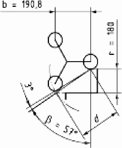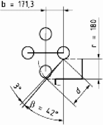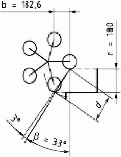 Наконец, граница, b, которая равна расстоянию между общей осью кластера и центрами его кулачков, может быть вычислена из соотношения между радиусом и длиной стороны многоугольника по следующей формуле (и как показано на рисунке K.2):