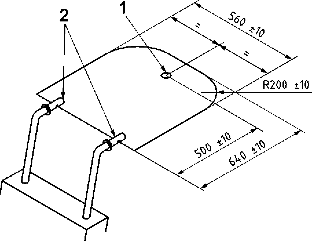 r, которая номинально равна 180 мм для прямой испытательной лестницы.