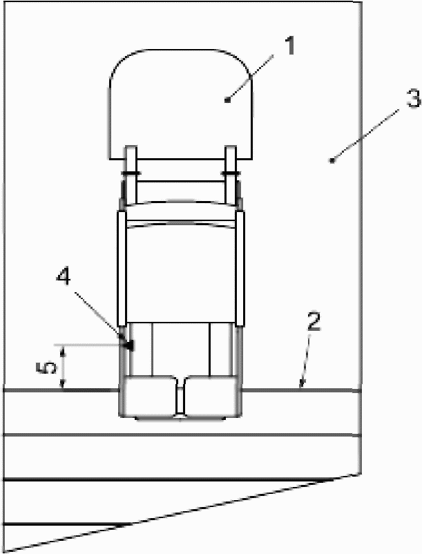j) Если во время испытания встретилась опасная ситуация, испытание начинают снова, используя начальную позицию, которая располагается на (50 +/- 2) мм дальше от центральной оси винтовой испытательной лестницы. Повторяют эту процедуру, как необходимо, до тех пор, пока испытание сможет быть закончено без возникновения опасной ситуации.