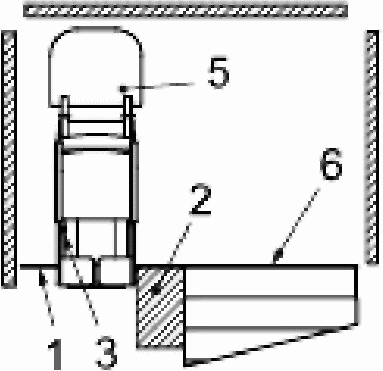 a) Подсоединяют винтовую испытательную лестницу в верхней лестничной площадке и устанавливают их на горизонтальную испытательную поверхность. Размещают регулируемые барьеры на каждой ступени. Устанавливают регулируемые барьеры на расстоянии от центральной оси лестницы для того, чтобы определить внутренний радиус пространства, необходимого для преодоления винтовой испытательной лестницы.