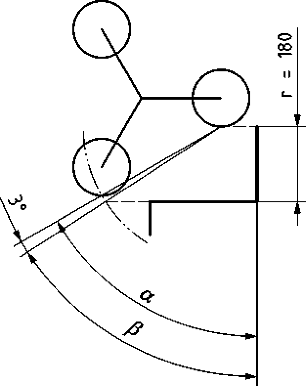 между линией, соединяющей точки контакта двух последовательных кулачков, и вертикалью, определяют по следующей формуле (и как показано на
