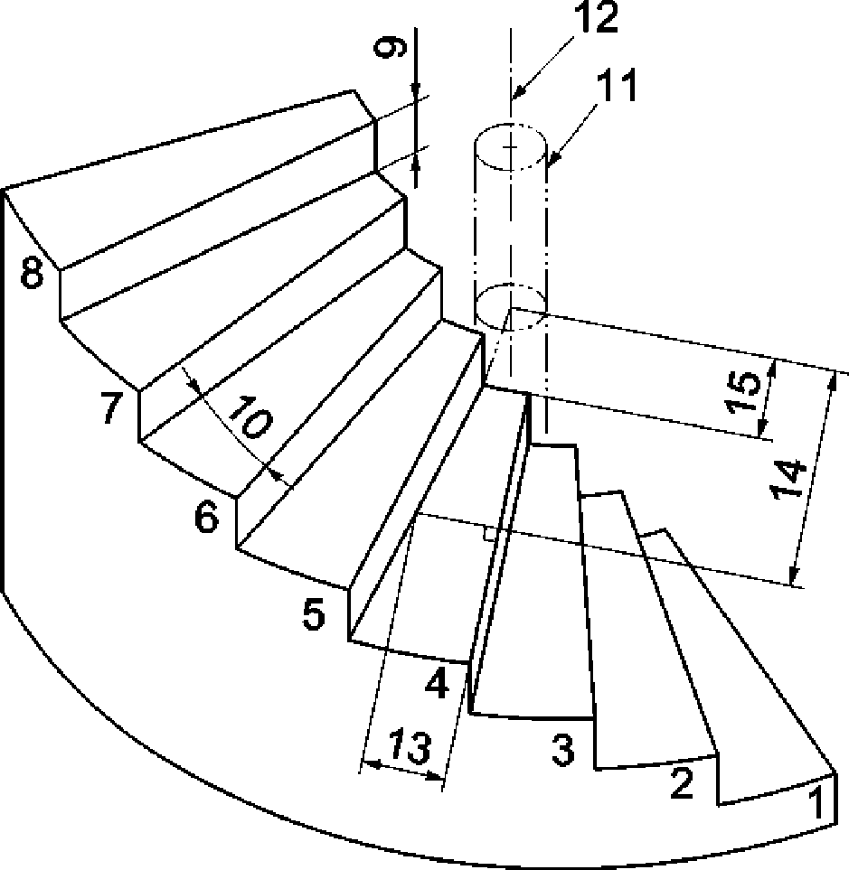 J.2.5 Определение минимального внутреннего радиуса винтовой лестницы