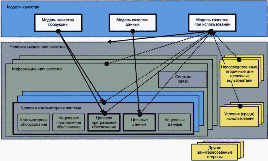 У программных продуктов и преимущественно программных вычислительных систем много заинтересованных сторон, в число которых входят разработчики, приобретатели, пользователи или клиенты компаний, использующих преимущественно программные вычислительные системы. Подробная спецификация и оценка качества программного обеспечения и преимущественно программных вычислительных систем являются ключевыми факторами в обеспечении полезности для заинтересованных сторон. Оценка может быть выполнена на основе определения необходимых и требуемых характеристик качества, связанных с задачами заинтересованных сторон и целями системы, включая характеристики качества, относящиеся к системе программного обеспечения и данным, а кроме того, и воздействие системы на ее заинтересованные стороны. Важно, чтобы, по возможности, характеристики качества были определены, измерены и оценены с использованием проверенных или широко распространенных показателей и методов измерения. Для идентификации соответствующих характеристик качества, которые могут далее использоваться для определения требований, критериев их удовлетворения и соответствующих показателей, могут быть использованы модели качества из настоящего документа.