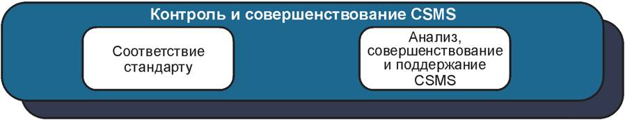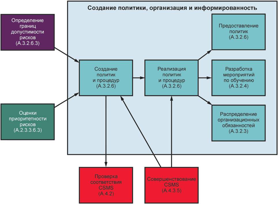 Элементы CSMS, приведенные в настоящем стандарте, в целом включают в себя политику, процедуру, практику и соответствующий персонал и служат описанием того, что включается или должно быть включено в окончательный вариант CSMS для организации.
