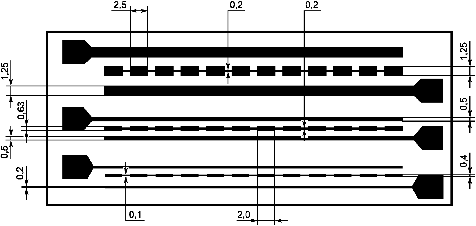 рисунке В.15, применяют для контроля способности и стойкости гибких печатных плат к перегибам. Окончательная конфигурация тест-купона должна быть определена в зависимости от применения готовых плат и согласовывается между поставщиком и заказчиком.
