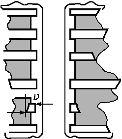 Обнажение стеклоткани | Обнажение стеклоткани допустимо, если этот дефект не уменьшает расстояние между проводниками меньше минимально допустимого (за исключением области с обнаженной стеклотканью) | Никакого обнажения стеклоткани | |