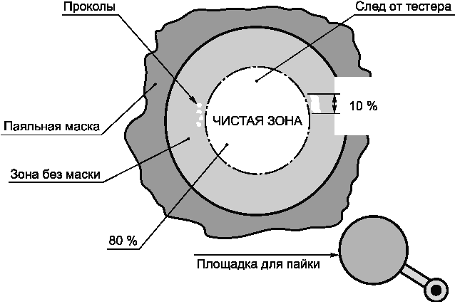 Пустоты в поверхности | Приемлемо, если не превышает 0,8 мм по самому своему длинному параметру или не превышают 5% области печатной платы на каждой стороне | |