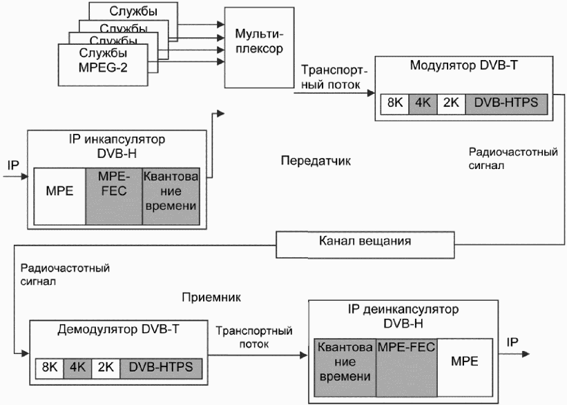На физическом уровне система DVB-H в соответствии со стандартом ETSI