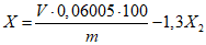 Массовую долю органических кислот в пересчете на уксусную X, %, вычисляют по формуле