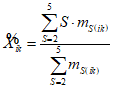 mS(ik) - число респондентов, давших оценку S баллов k-му потребительскому свойству услуг i-го вида.