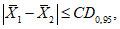 0,95 - критическая разность при P = 0,95, n