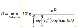 В максимуме азимутальной ДН КНД D, дБ, определяется по формуле: