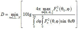В среднем по обслуживаемой зоне КНД D, дБ, определяется по формуле:
