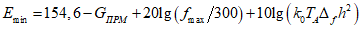 Минимально допустимая плотность потока энергии сигнала Пmin, дБ относительно Вт/м2 определяется по формуле: