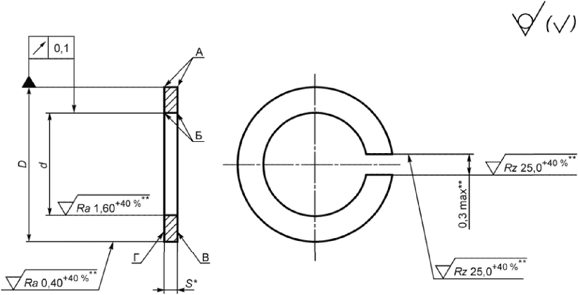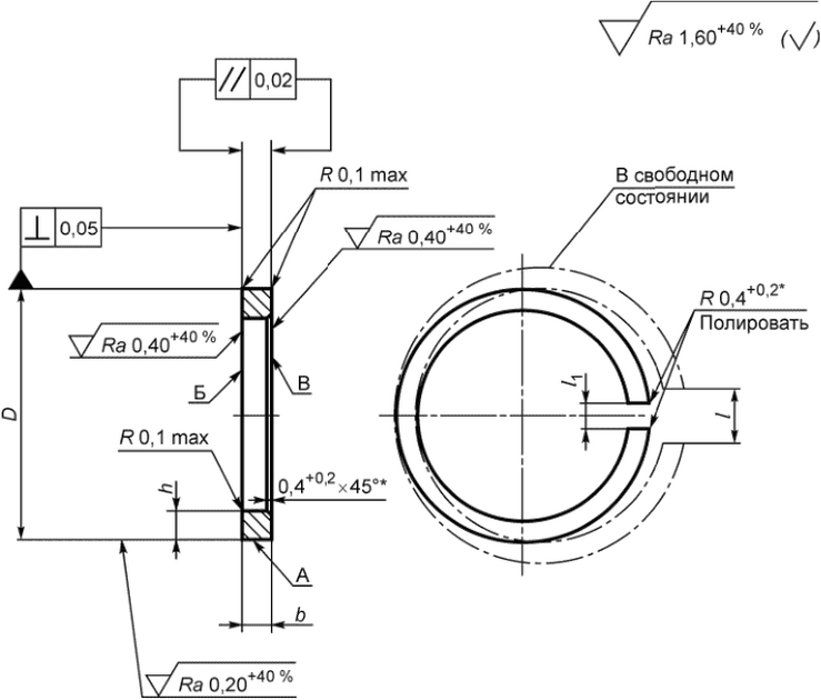 6.4 Размер D и допуск параллельности указаны до разрезки кольца.