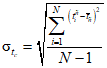 - среднее квадратическое отклонение, вычисляемое по формуле