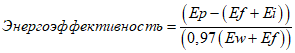 Ep - годовой объем энергии, произведенной в виде тепла или электроэнергии. Этот показатель умножается на коэффициент 2,6 при расчетах для электроэнергии и на коэффициент 1,1 - при расчетах для тепловой энергии, произведенной для коммерческих нужд, ГДж/год;