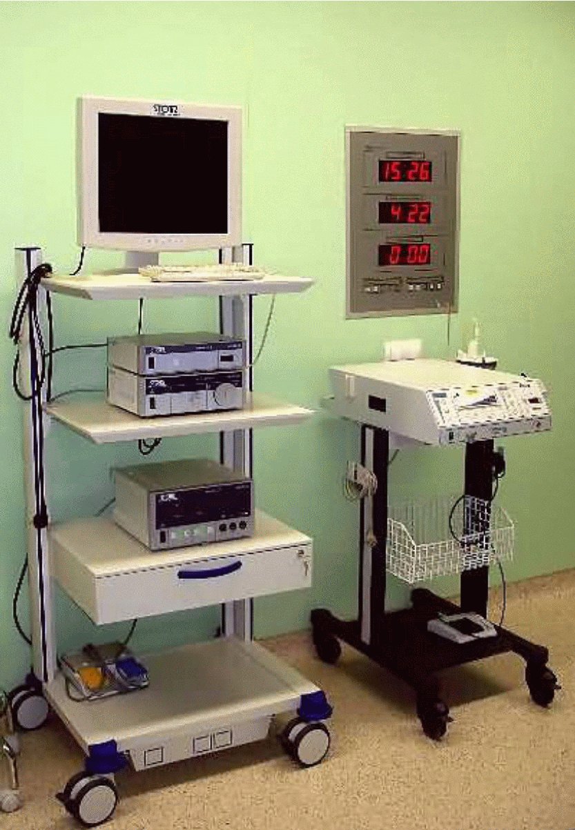 Пример операционной нейрохирургической стойки с набором эндоскопов приведен в