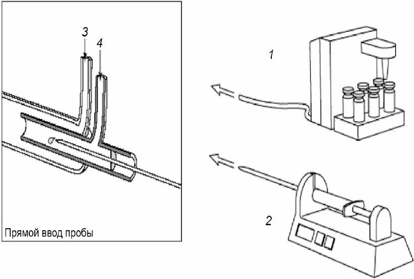 Система прямого ввода пробы должна обеспечивать подачу испытуемого материала во входной несущий поток, направляющий его в зону окисления с контролируемой и воспроизводимой скоростью. Следует использовать механизм привода шприца, обеспечивающий подачу образца из шприца со скоростью приблизительно 1 мкл/с (см.
