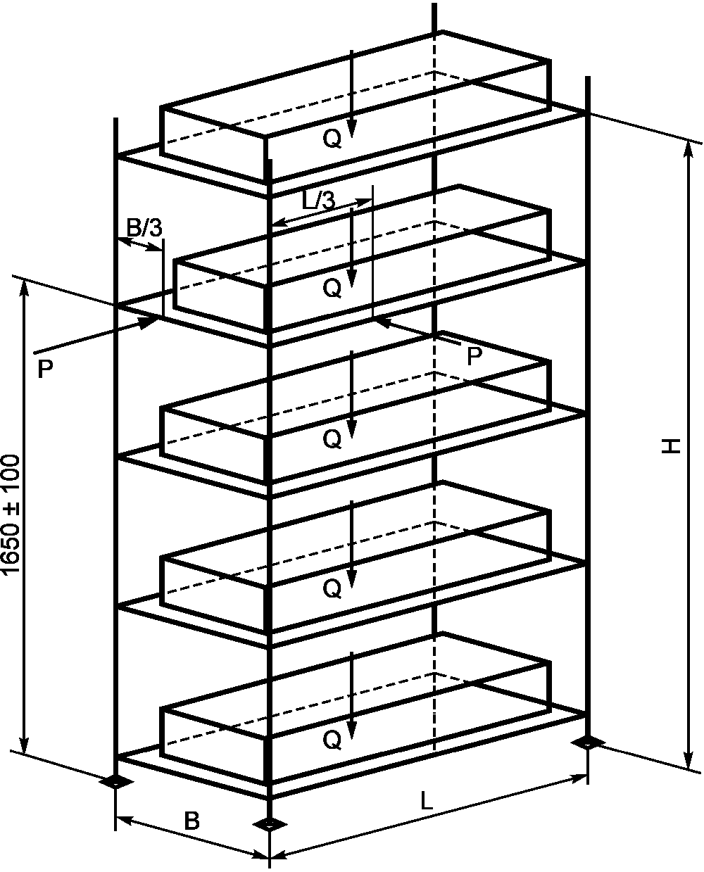 Примечание - После загрузки всех полок стеллажа нагрузка на секцию стеллажа должна составлять не менее чем 1,10 от эксплуатационной нагрузки