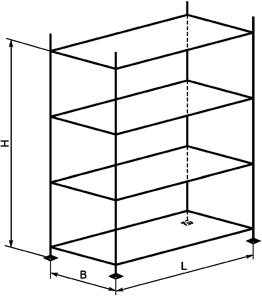 Направление действия горизонтальной статической силы должно быть строго перпендикулярно фронтальной и боковой плоскости секции стеллажа.