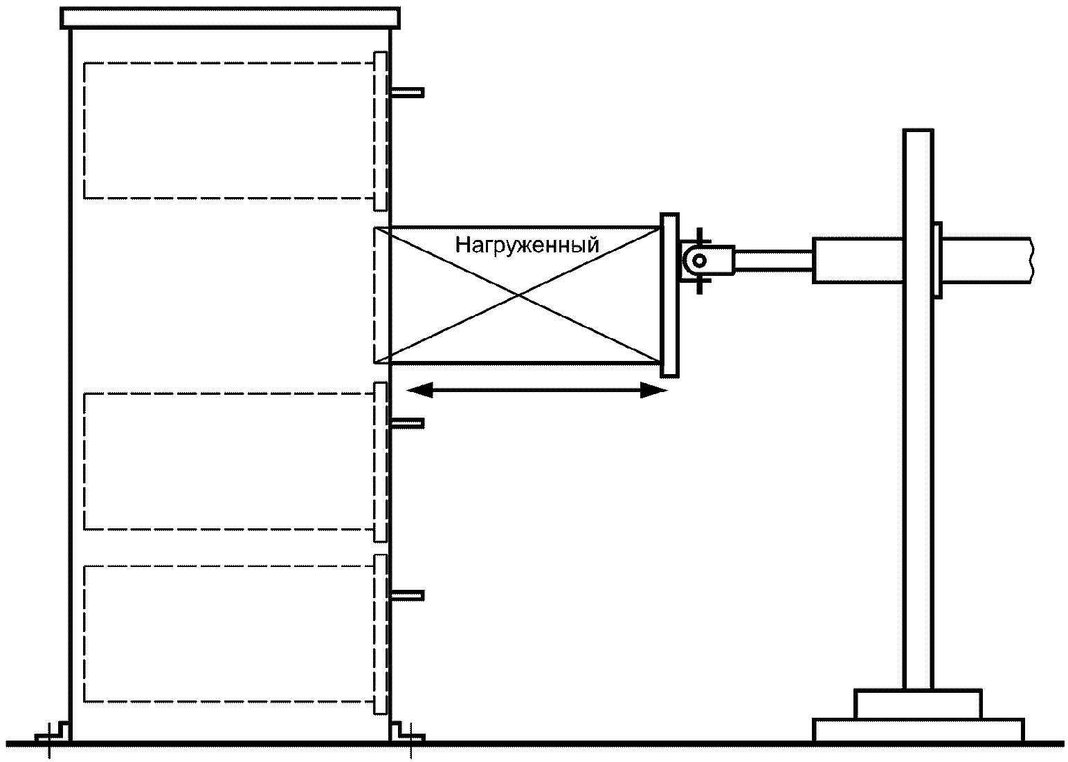 7.10.1. Циклическое устройство должно быть присоединено к центру ручки ящика. Если ящик оснащен боковыми ручками, то циклическое устройство должно быть присоединено к центру одной из ручек. Циклическое устройство необходимо настроить таким образом, чтобы ящик картотеки двигался в пределах от 0 - 6 мм от закрытого положения до 0 - 6 мм полностью выдвинутого положения и осуществлялся возврат в исходное состояние. Это движение должно составлять один цикл. Циклическое устройство не должно облегчать или добавлять вертикальную или горизонтальную нагрузки к направляющим (см. рисунок 5).