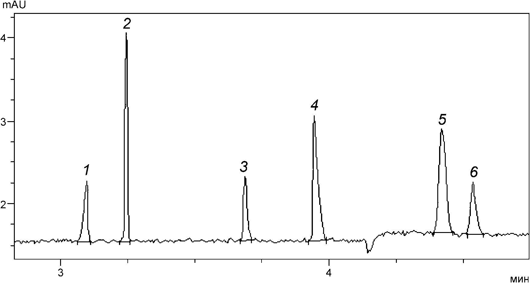 6.1.1 Система капиллярного электрофореза (далее - прибор) с источником высокого напряжения отрицательной полярности, оснащенная кварцевым капилляром с общей длиной не менее 50 см и внутренним диаметром от 50 до 75 мкм, спектрофотометрическим детектором, позволяющим проводить измерения при длине волны от 190 до 200 нм, и компьютером с программным обеспечением для регистрации и обработки электрофореграмм.