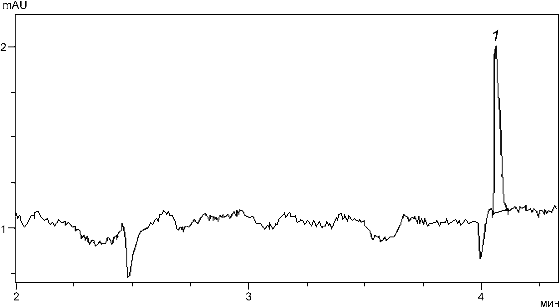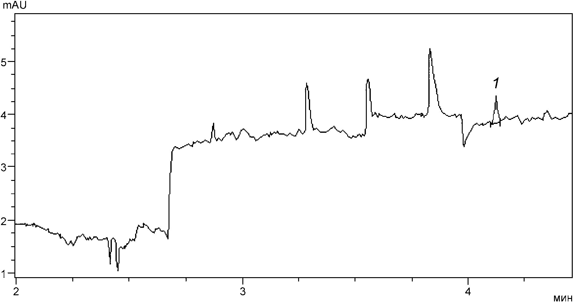 Электрофореграмма подготовленной пробы кормовой добавки получена в условиях, приведенных в