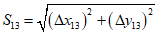 Фиксируют точкой на миллиметровой бумаге проекцию центрира (координаты x1 и y1). Поворачивают дважды верхнюю часть теодолита на 120° и отсчитывают координаты (x2 y2 и x3 y3) перемещения проекции перекрестия сетки при каждом его положении. Вычисляют длины сторон треугольника по формулам: