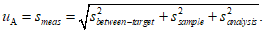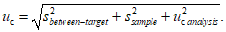 uс, полученного по рассматриваемой технологии с учетом дисперсии пробоотбора ЯМ и дисперсии, обусловленной варьированием измеряемой величины между объектами пробоотбора