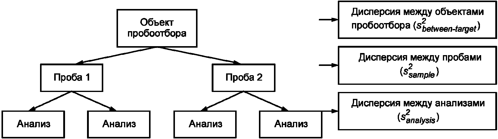 Среднее значение  | Дисперсия между анализами  | Дисперсия между пробами  | Дисперсия между объектами пробоотбора  |