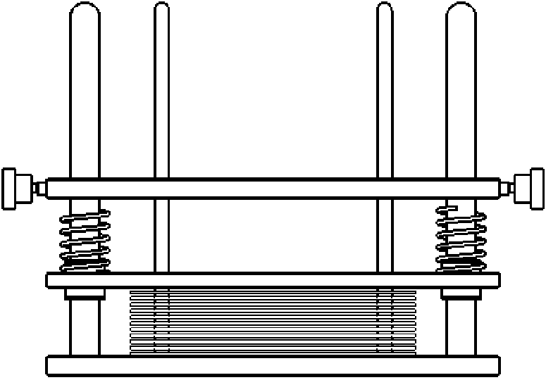 Примечание - В одном устройстве одновременно можно испытывать до десяти образцов, отделенных друг от друга пластинкой. Если подготовлено менее 10 образцов для испытаний, все равно должны быть использованы все 11 пластин, чтобы поддерживать нужное номинальное давление.