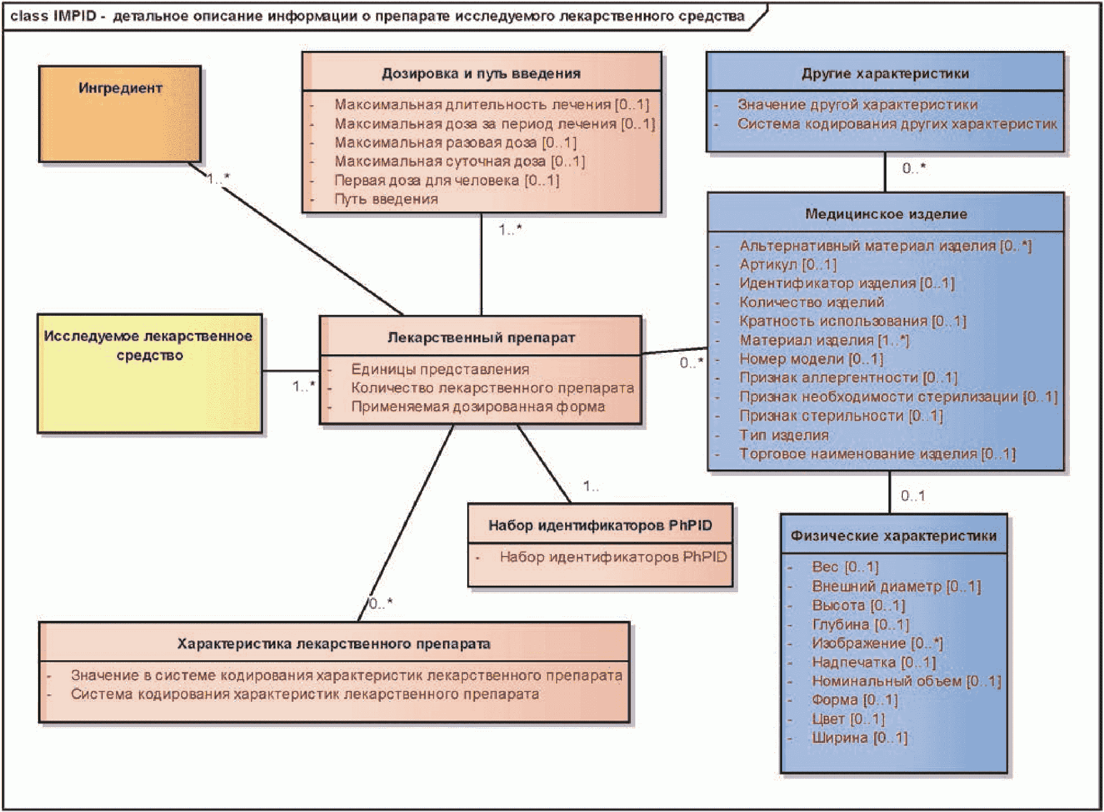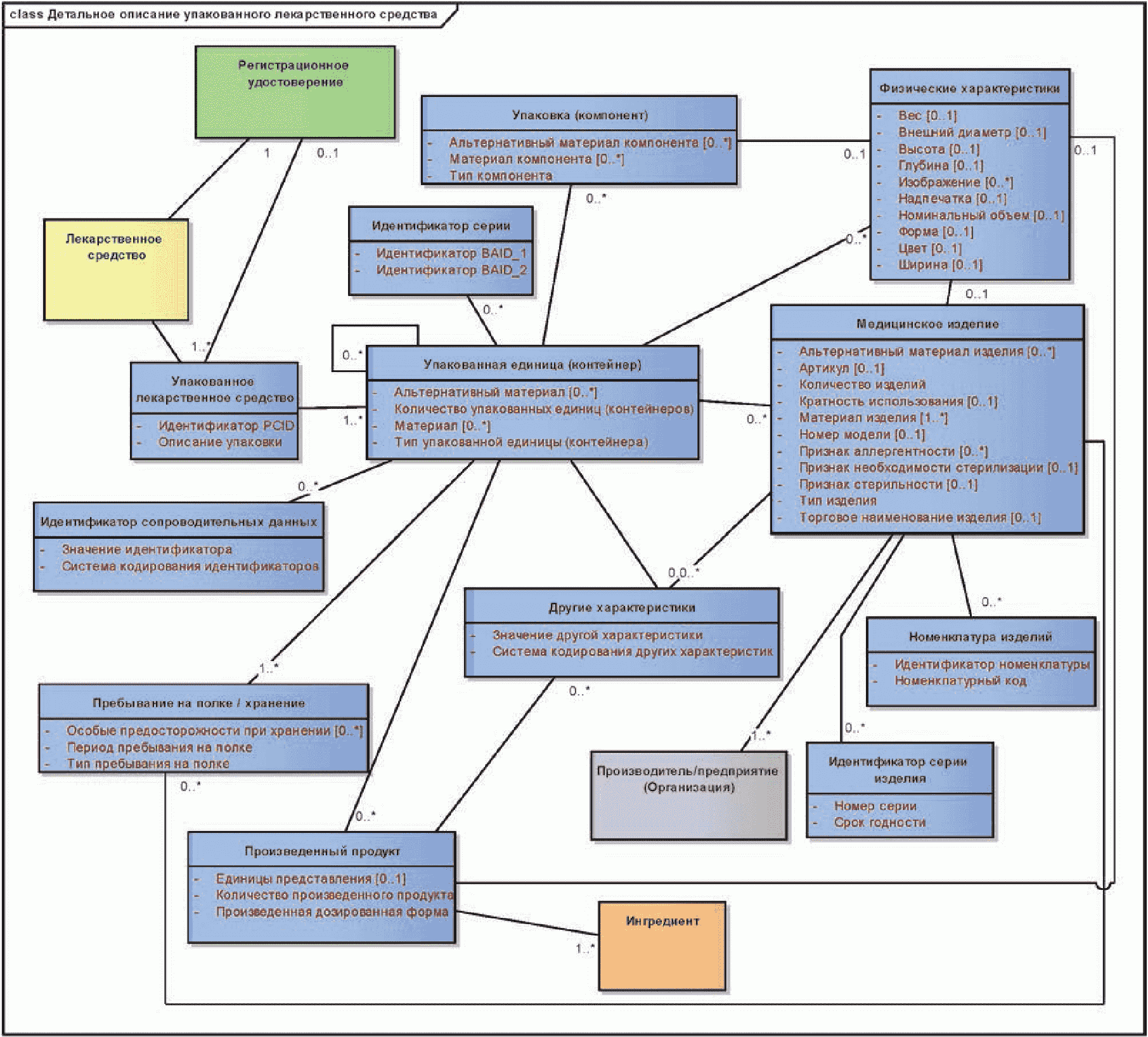 На приведенной ниже диаграмме показаны сущности описания медицинского изделия.